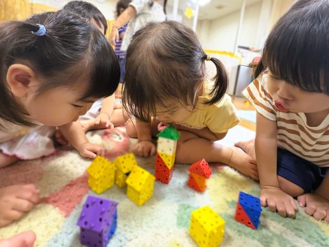 室内にはままごとやブロック、木製玩具、絵本など沢山のおもちゃがあり開放時間中は自由に遊ぶことができます。